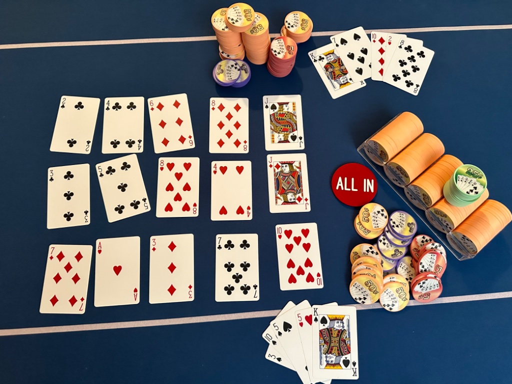 First home tournament was a success. I had a couple last minute cancelations so only 11 players but 16 entries for a $800 pot for 1st, 2nd and 3rd place.