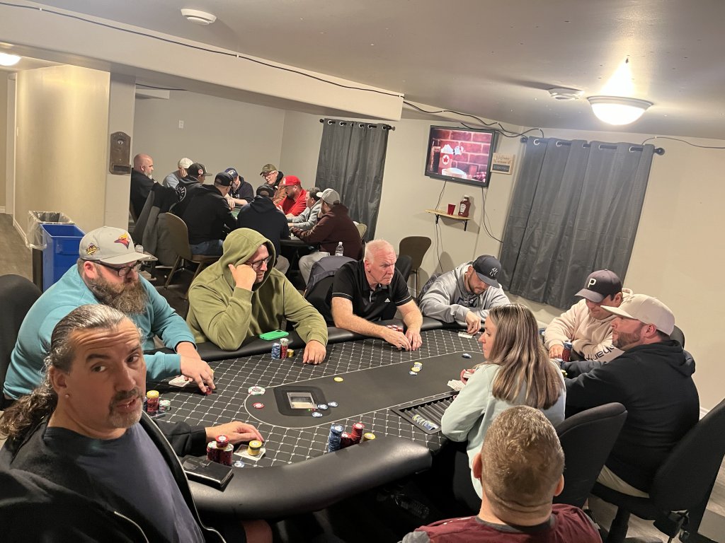 I really was spectating for 3 hours… the game started dying so I jumped in and saw @Gorbash stack his friend (pictured in the center) with a straight flush over an ace high flush in an unpaired board. Probably a 4k pot