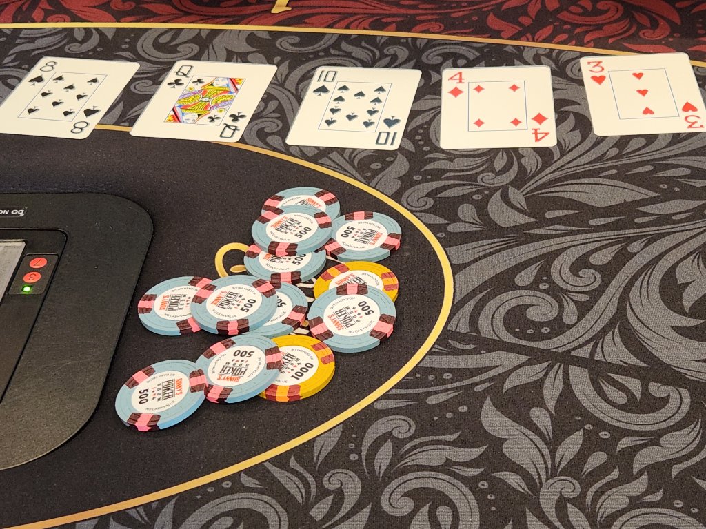 This week we had 10 players with 28 total bullets fired. I bought in 3 times w/ $10 add-on at the break.