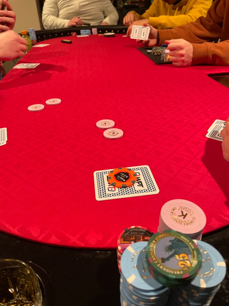 Scraped through with a short stack for a 3rd place finish to net $5 profit. These people don’t do ICM. We had a double knock out on the bubble who both had more chips than me.View attachment 1412370First game for the 60 inch round table w/2 layers of auto foam. View attachment 1412371View attachment 1412372View attachment 1412374View attachment 1412373