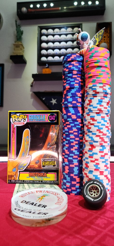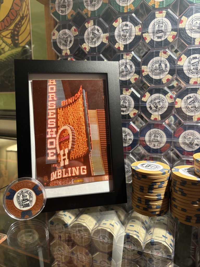 A peek into the cabinet. My @justincarothers Group Buy 43mm Binion’s Tribute on the Web mold, next to a picture my dad took of the Horseshoe in the 70’s, with an authentic Binion’s chip rounding out the ensemble.