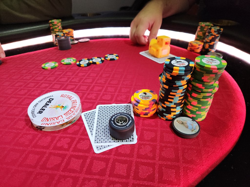 I just played the jankiest poker tournament of my life. Had a lot of fun though, nice social get-together.