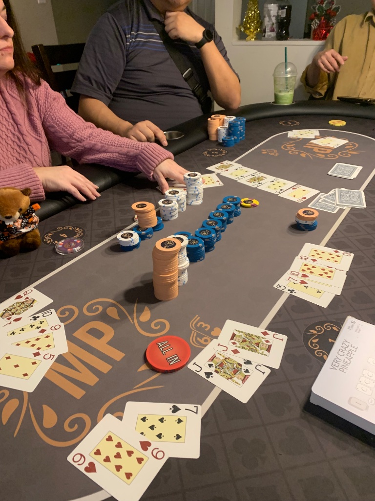 Bsck at the Professor's Game! .50/.50 Mixed games. They actually played a few rounds of 5CardNoPeeky which is a nightmare since half the table is drunk and high on top of having hearing aids.