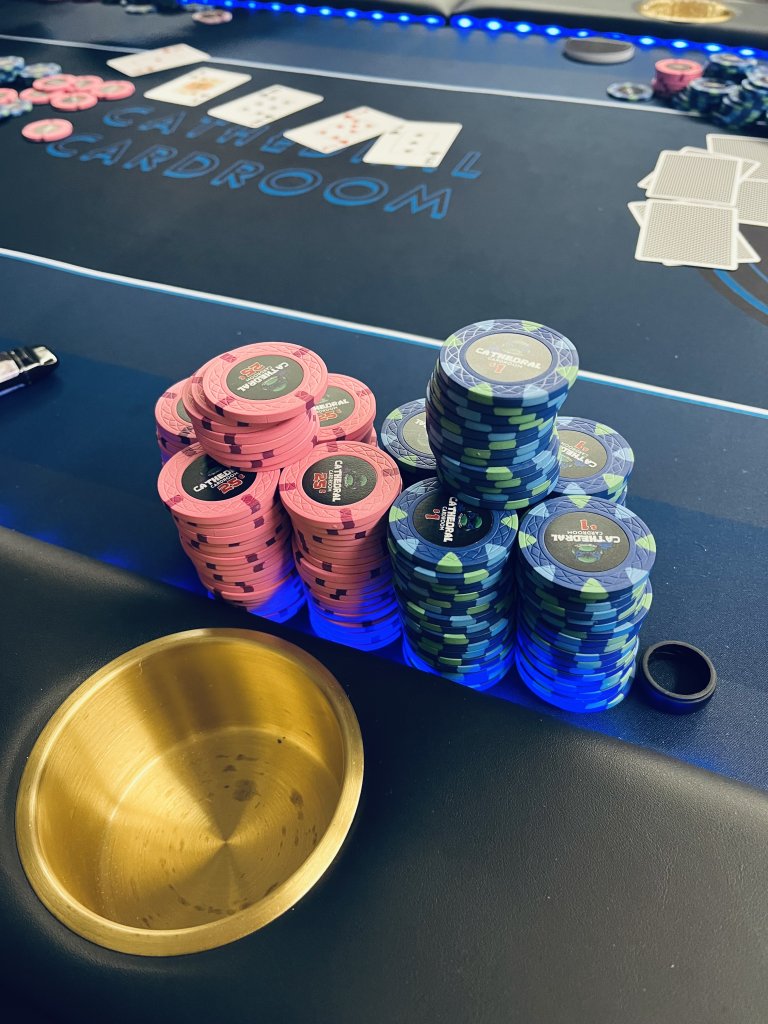 @Boother36 bought some Desert Palms BCC chips from @TheChipRoom back around 2009ish for like $1 each, and I thought he was certifiably crazy to spend that kind of money on poker chips. Jim at the Chiproom was local to us back then and that eventually got me started chipping as well. Boother has been hosting a New Year’s Day game for quite some time now and I don’t think I’ve ever missed one. He is an excellent host and was always ahead of the curve with his basement remodel, great table and beautiful chips. Always a great spread of food, and we both have a thing for cheap beer like Hamm’s or High Life, so it’s always a great time. This year was no exception! There were quite a few pcf players in attendance, plus a few guys I’ve been friends with for 40 or even gasp 50 years!
