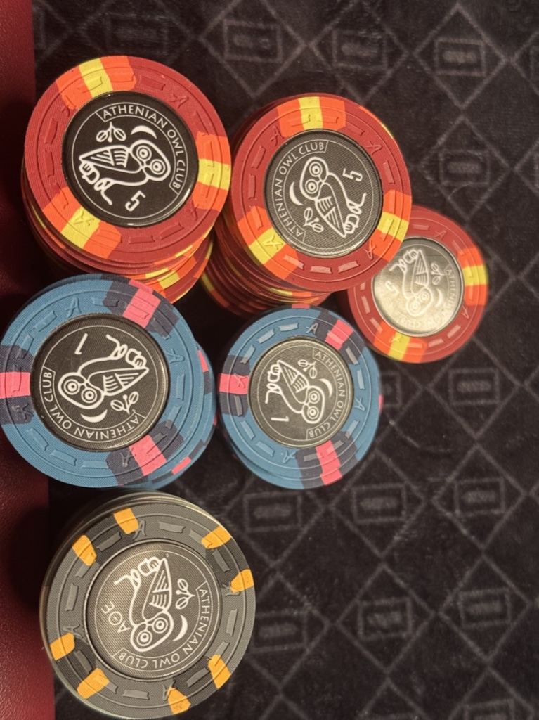 Second and most important, they 're very handy at those stakes and with this crew, where everybody buys-in and re=buys using 50E bills. Orange-colored bills.:)