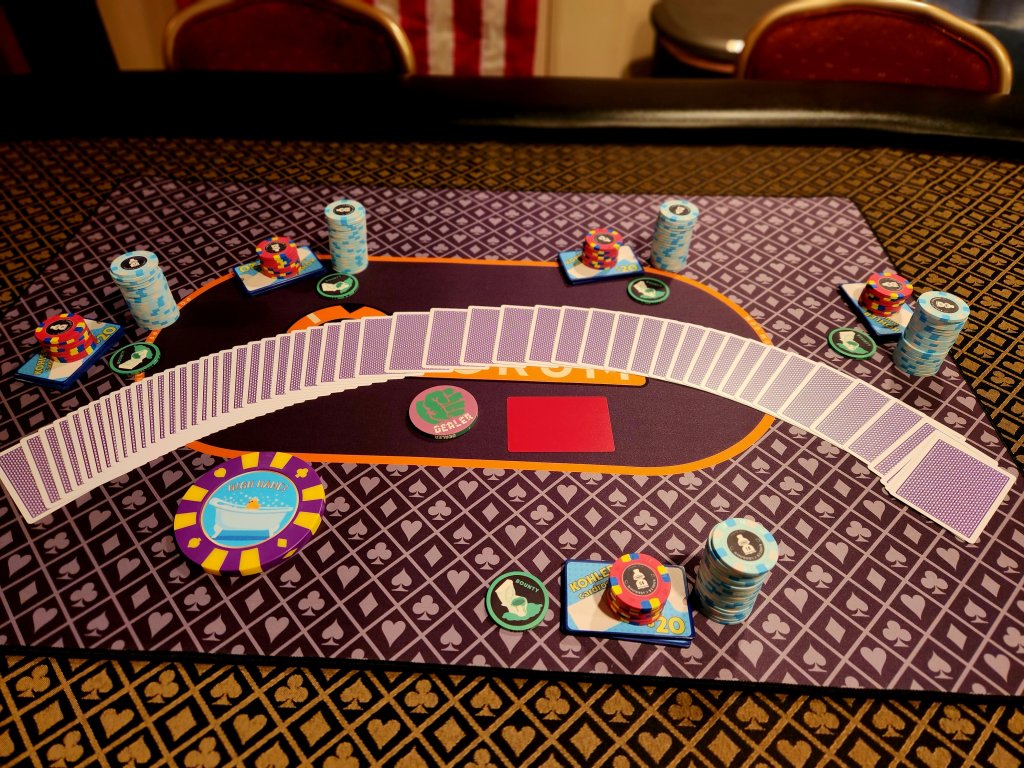 Forum celebrities @Gear and @Wifey were also in attendance, and it was just a treat for me to have them over for sharing of felt and good times, along with @chopper and @LotsOfChips . A few of these folks travel a great distance to attend my game in the sticks, so I am appreciative. I return the favor with great chips and tasty hot dogs!