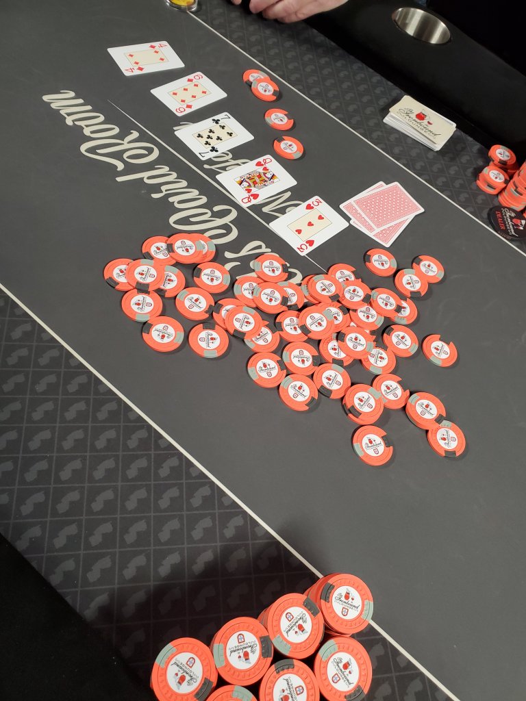 The night started w/ @Godzilla28 WINNING without actually being present for the now traditional 1st hand All-In BLIND. Me on the other hand have tried it at least 4 times & have not won it once. #*@% me.