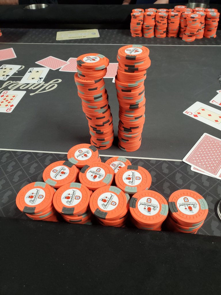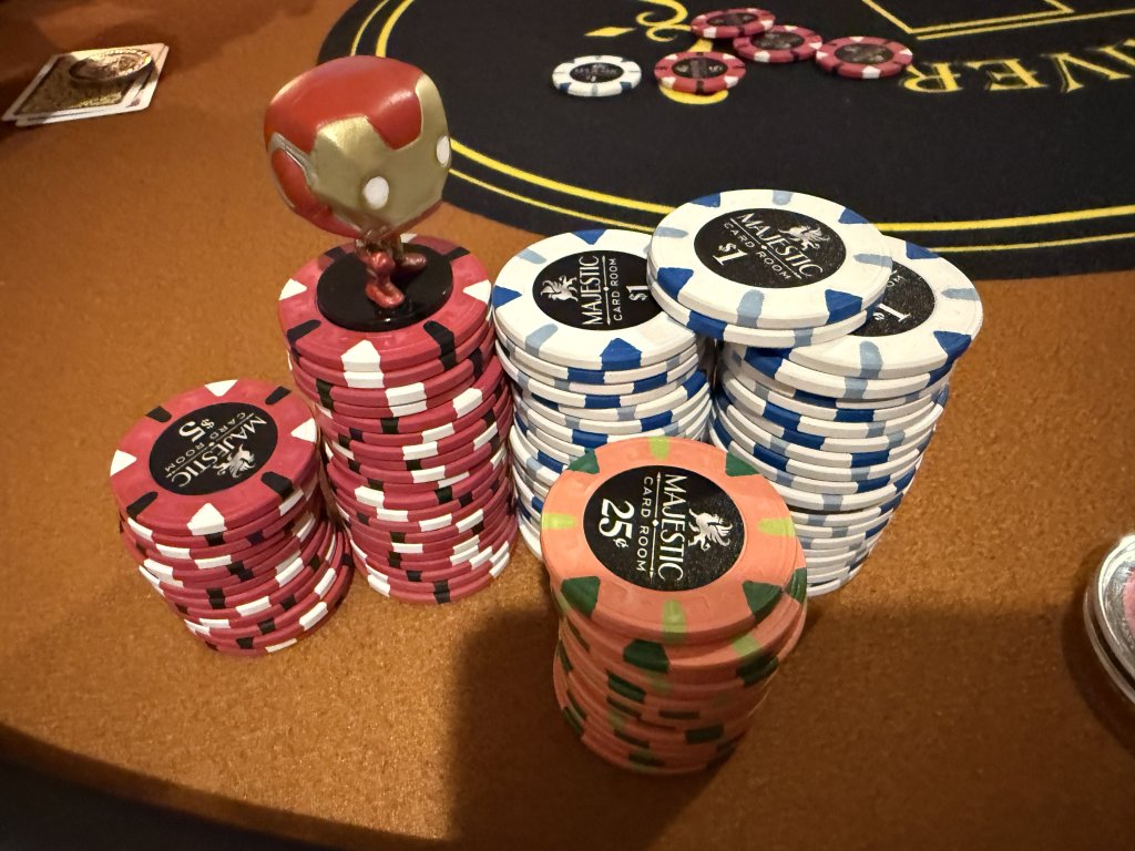 Down to this puny stack when I shove head up, lose and anther Friday night is in the books!