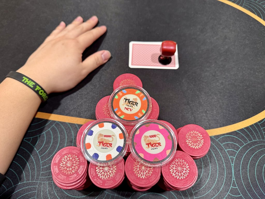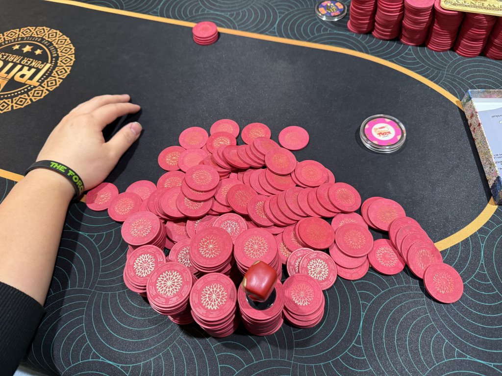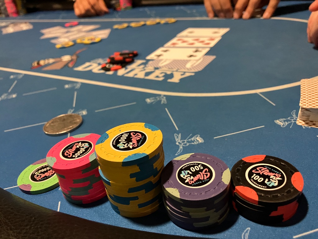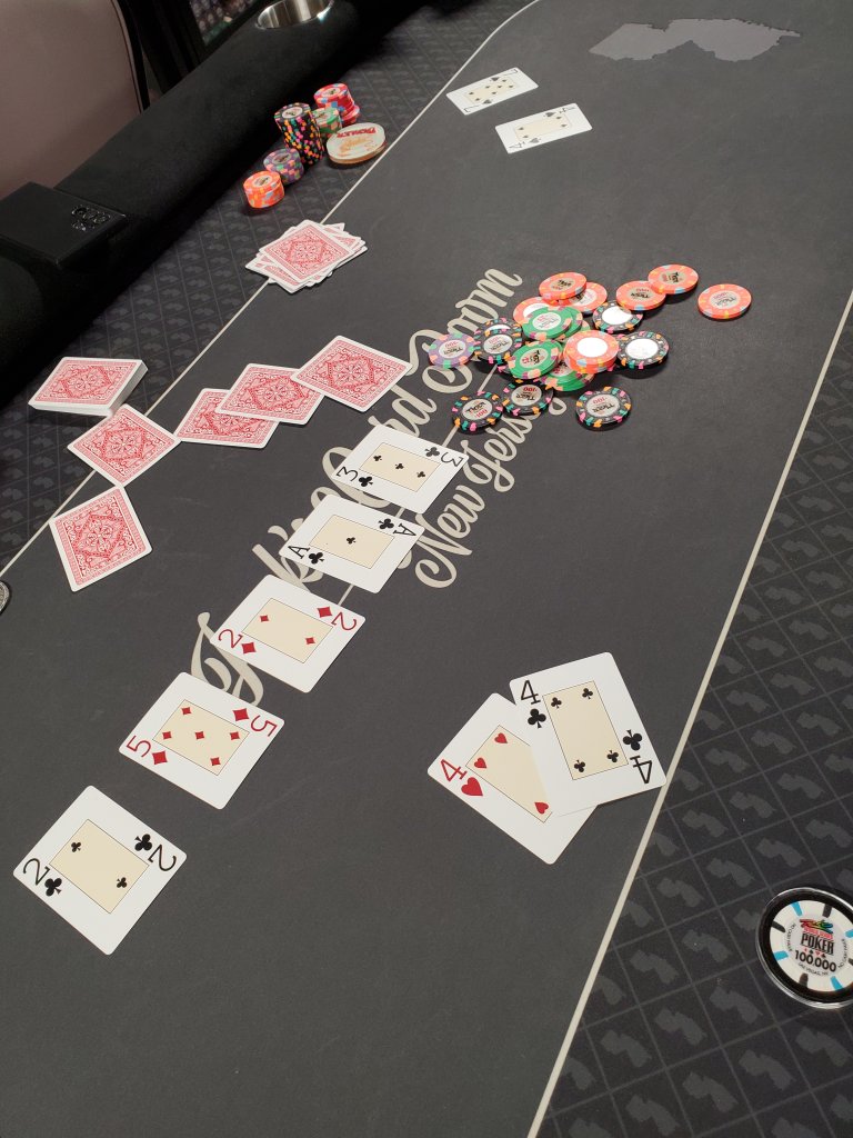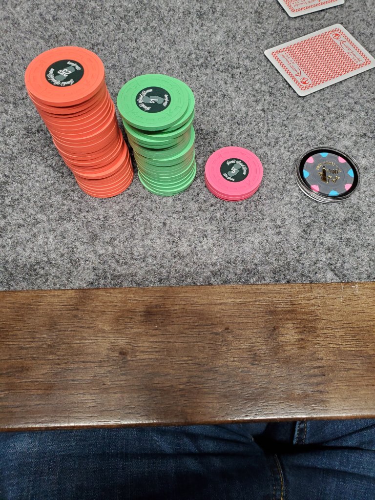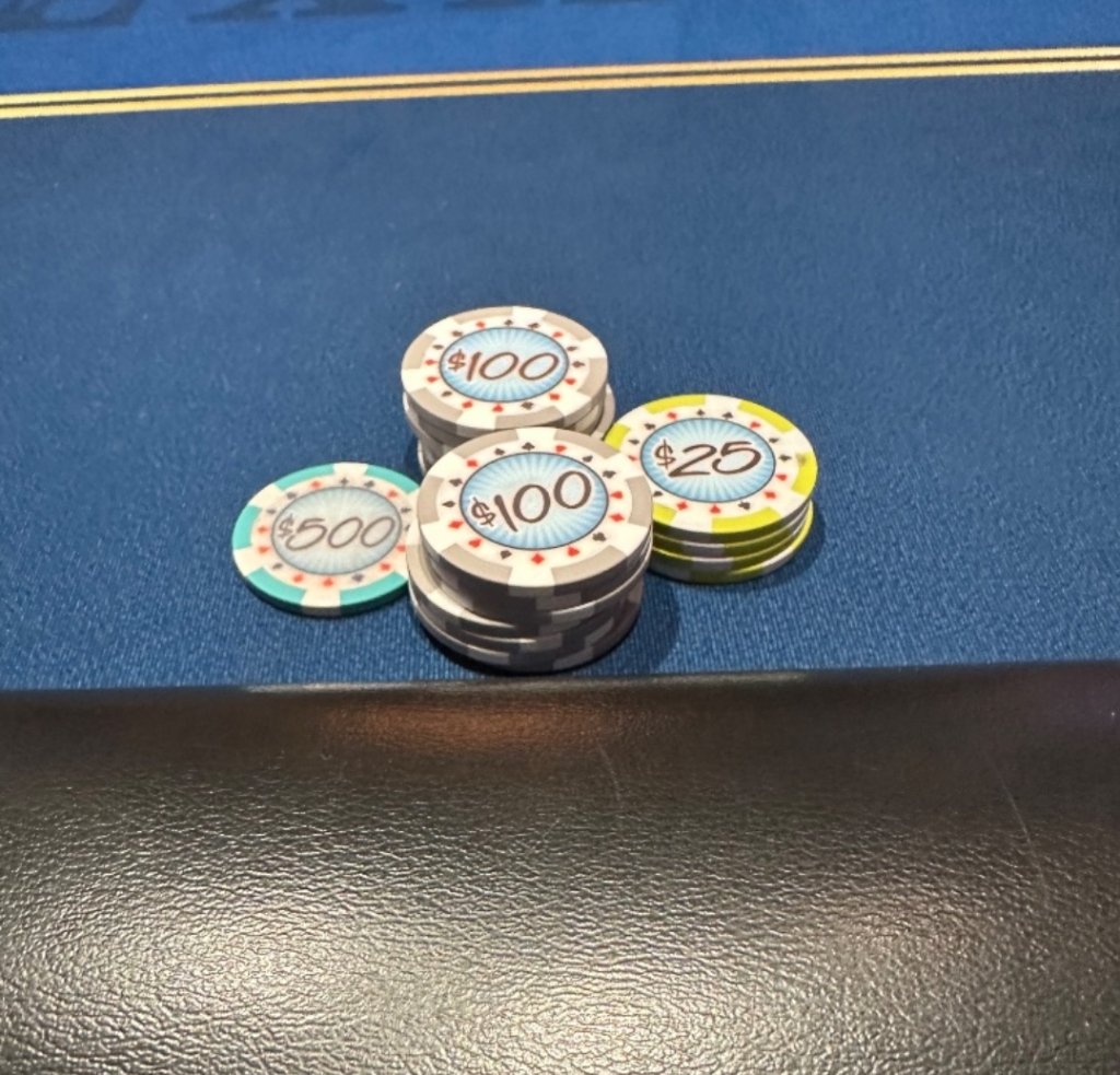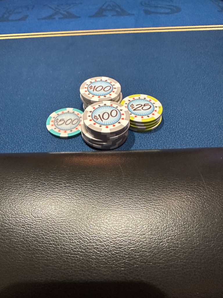 2nd tournament they got pissy about phones on the rail for some reason. Yet when it came to the first chopped pot, there was an extra chip that the dealer says “it stays for the next hand”. Casinos, go figure.