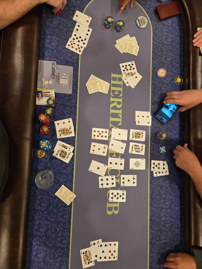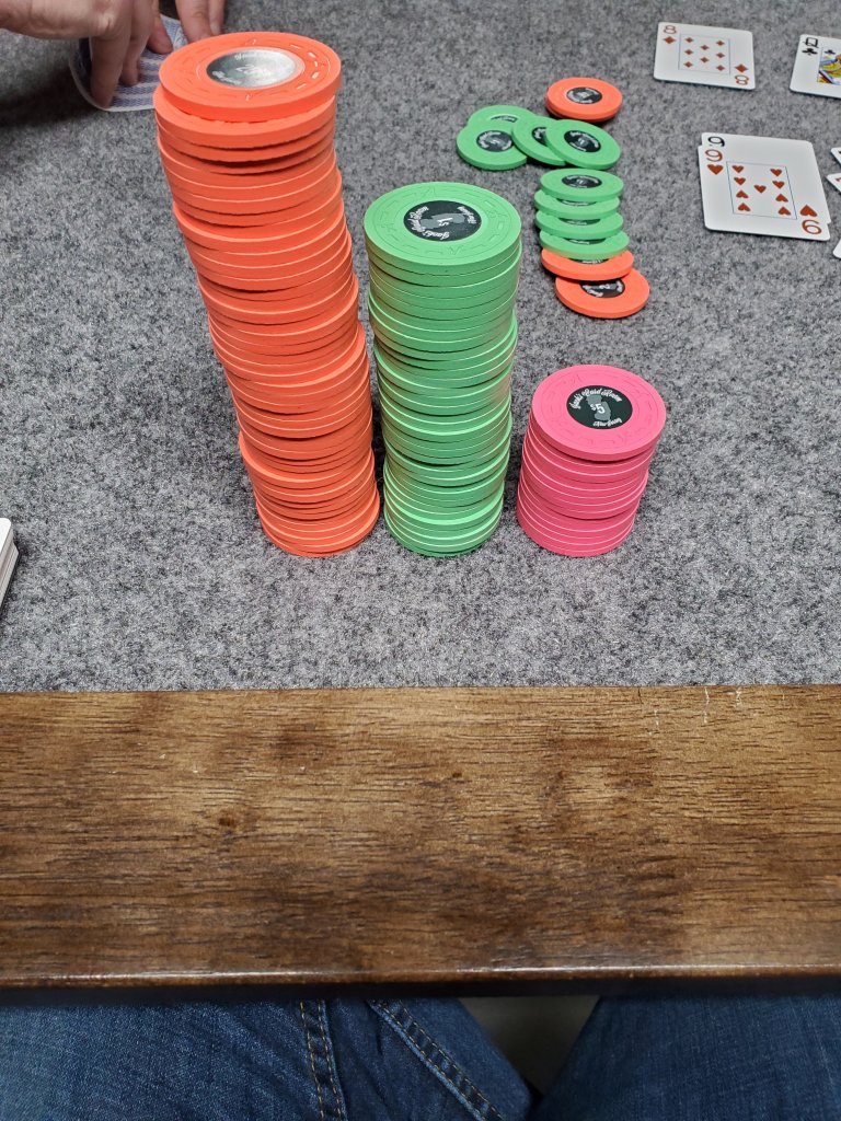 It was my birthday and we needed a blow out. It’s amazing how many people can turn up when I give them a bit of notice. Previously I’d tried to stand games up with 1-2 hours or days notice. This time I gave people weeks. Ended up with two full tables. 15 players. 24 buy-ins at penny stakes. Basic little customs with Statesman cards are a novel change for some. Main game was from 1pm to 6pm, after that, people only have to give a rounds notice before cashing out (but no one hit and ran), all wrapped up with a wild bomb pot at 9pm.