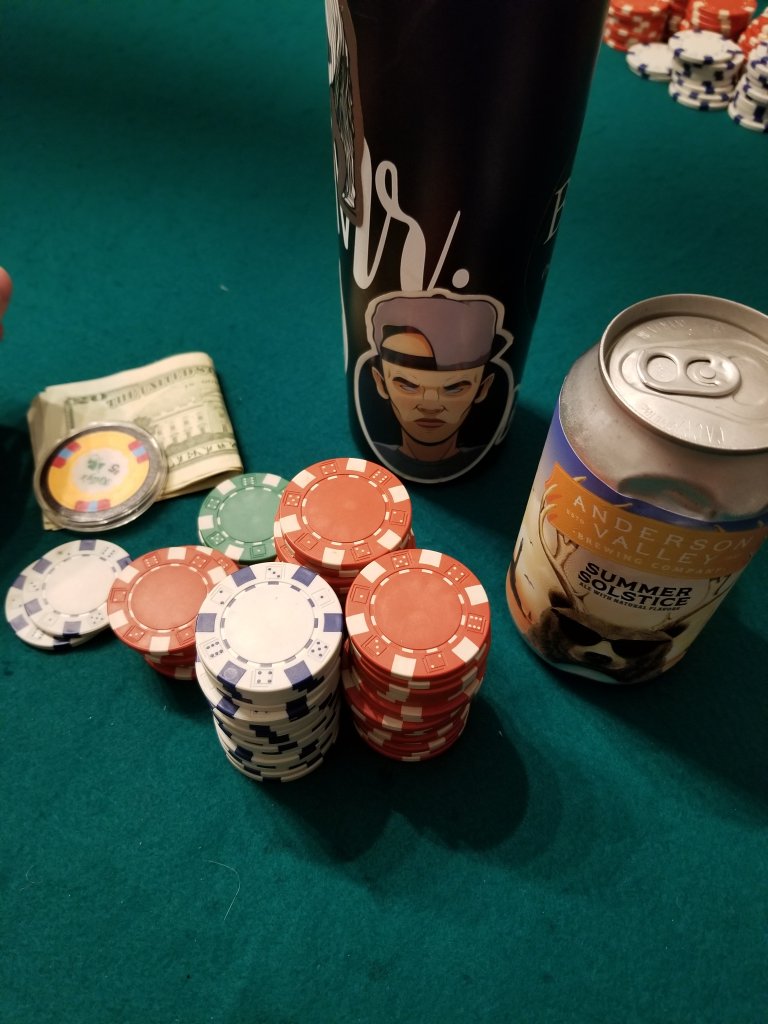 Night ended well a few hours later. Awkward moment at the end, I catch a full house drawing 3 to my Kings against the host for a good pot, then had someone shove against my aces full not noticing the $80 in cash I had earned on the table. THIS IS WHY GAMES SHOULD HAVE CLEAR RULES!!!! Always kepy my cash fanned out in clear view. But obviously I was happy and I barely needed the cash, had him almost covered in chips and I wasn't going anywhere.