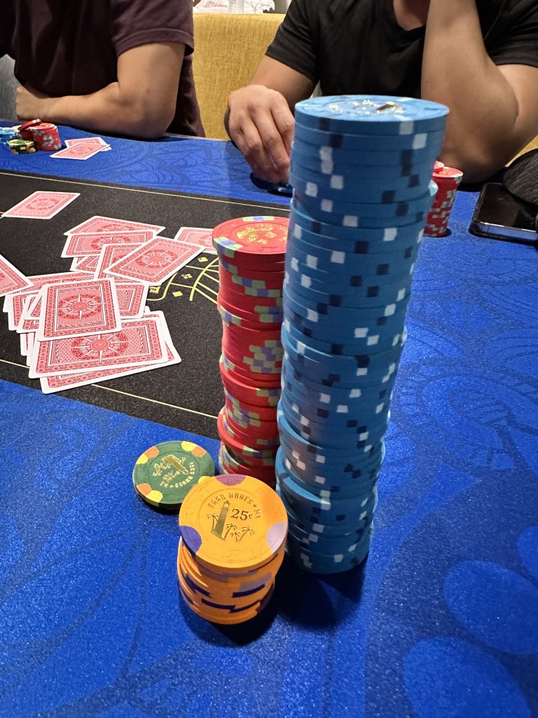 Some awkwardness and I think I was out of line later on. I was on edge for a lot of it, the next best player brought his buddy and they both made a point of sitting directly to my left and mentioned they had talked about me on the way. Usually would be lighthearted but I was iffy on him previously, kind of angle-y. He was shuffling while looking at the bottom cards, then straight up just start sifting through the deck while on break while it was just him and his buddy and me. I made sure they knew I was watching and it got washed. Buddy kept telling me he wasn't cheating.