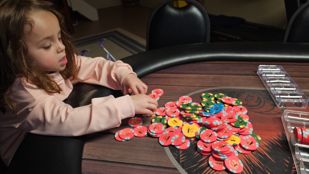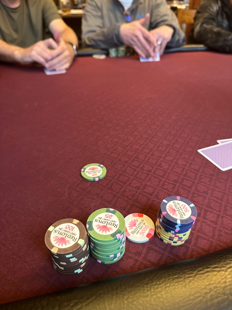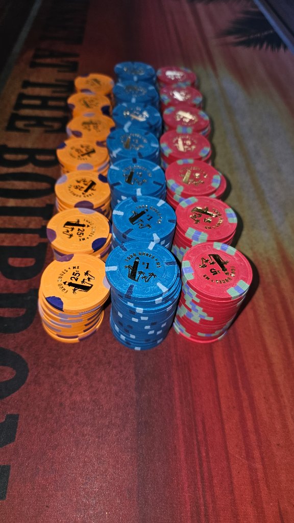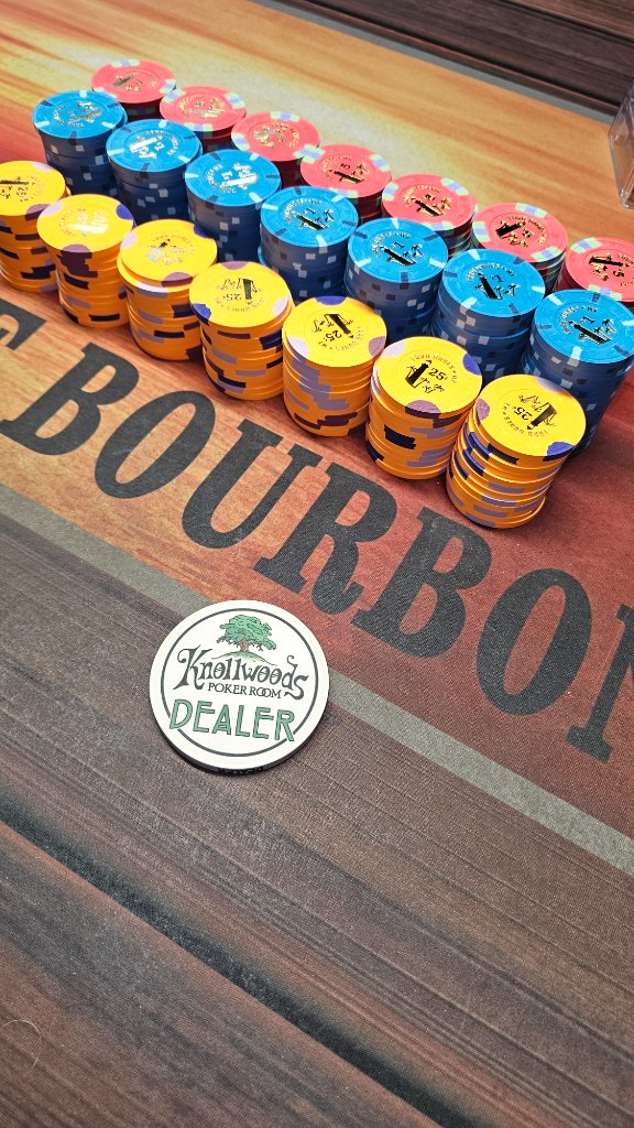 playing a mix of chips tonight. While I await 1000+ more WTHC set for now it’s just Parts of The WTHC, and parts of the custom Paulson set I have.