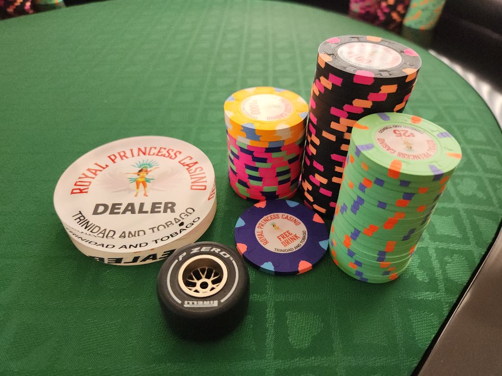 @Poker Zombie and @Mrs Poker Zombie ran their game last night and it was a survivor tournament. Cash out for the chips in your stack when the bubble breaks. $30 for $27 in chips and then a $30 optional add-on which most took advantage of.