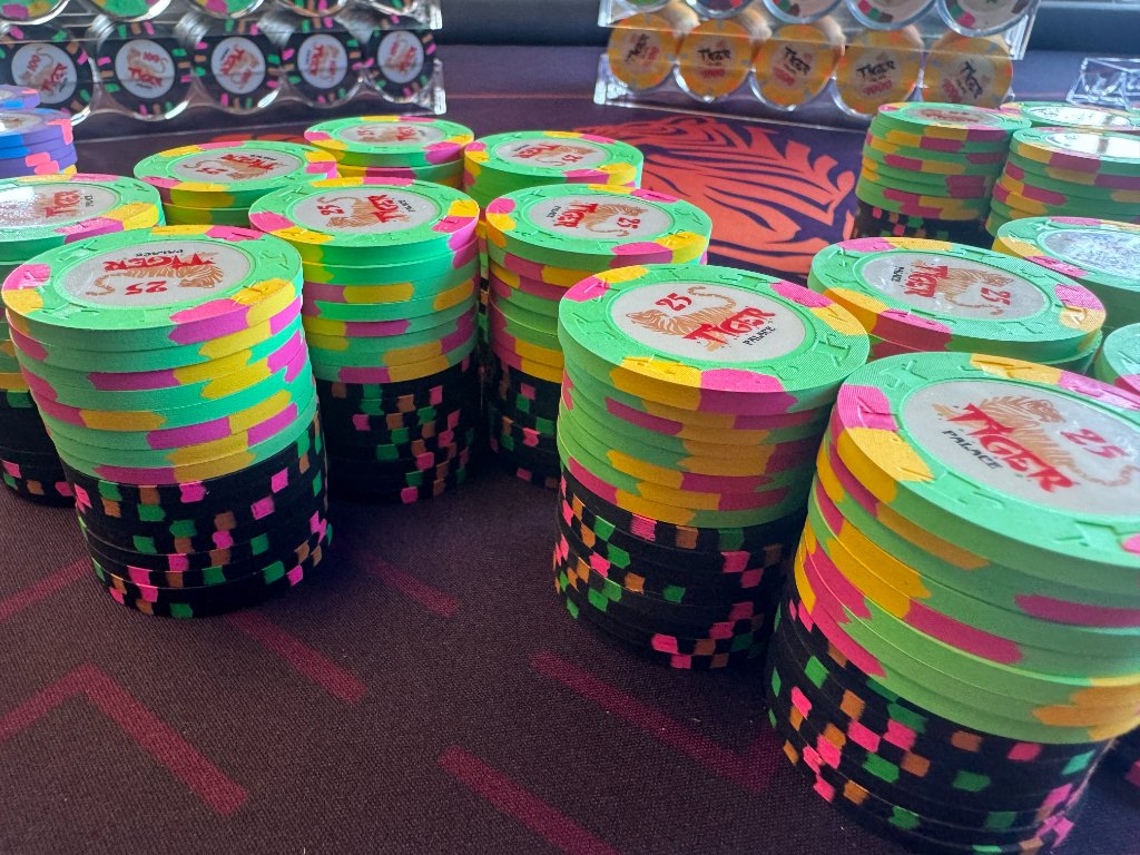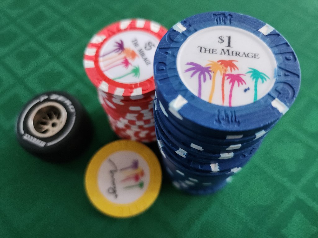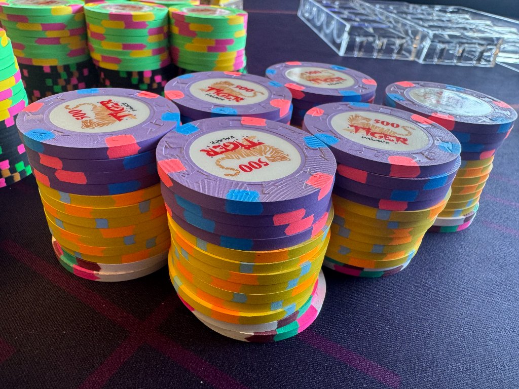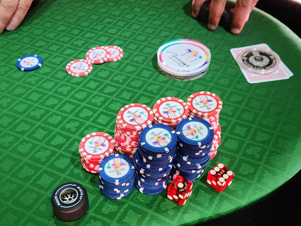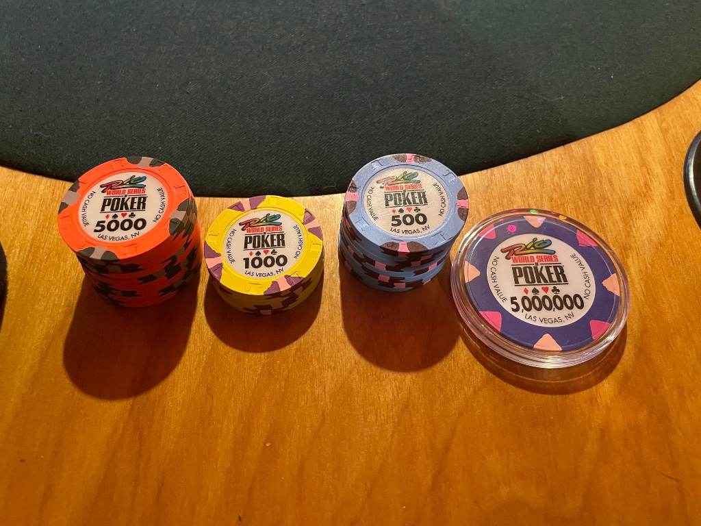 Got my newly upgraded Nevada Hotel chips into play for the first time. Better condition chips and the wonderful $25 chips too!