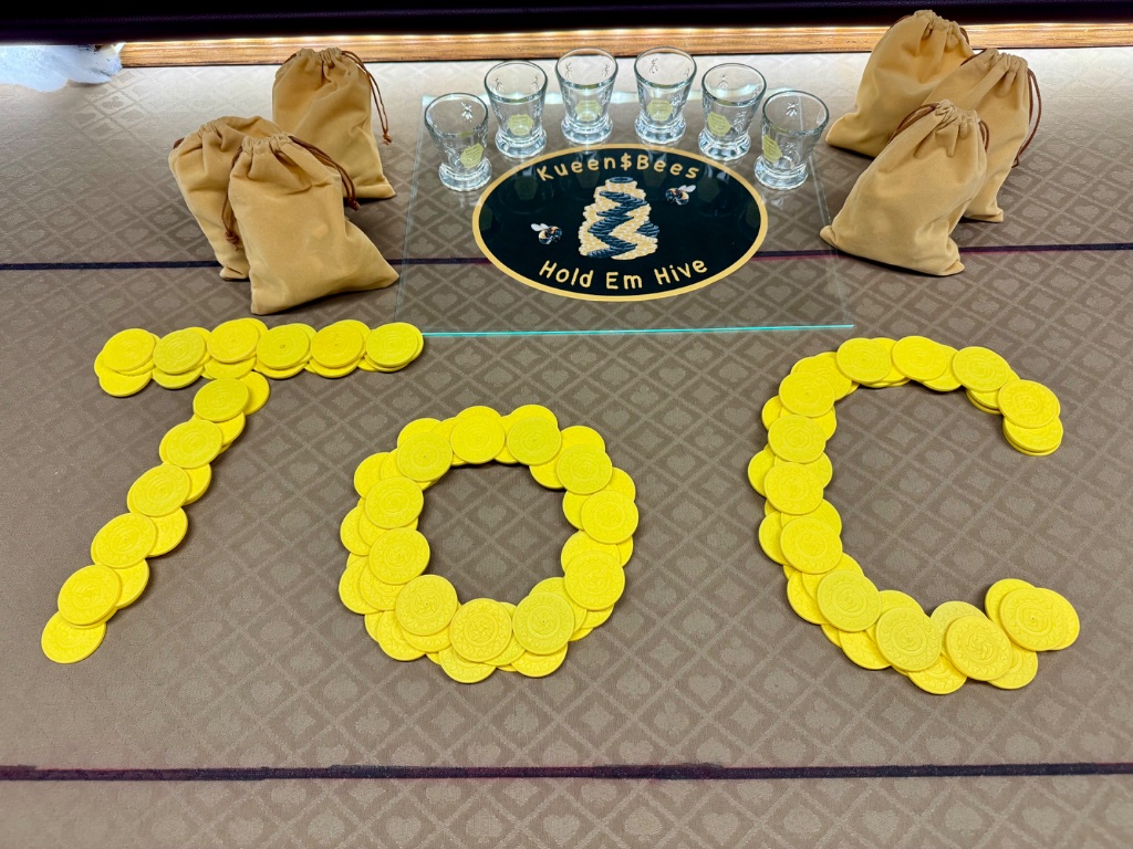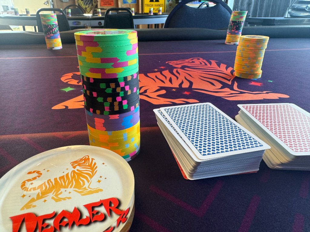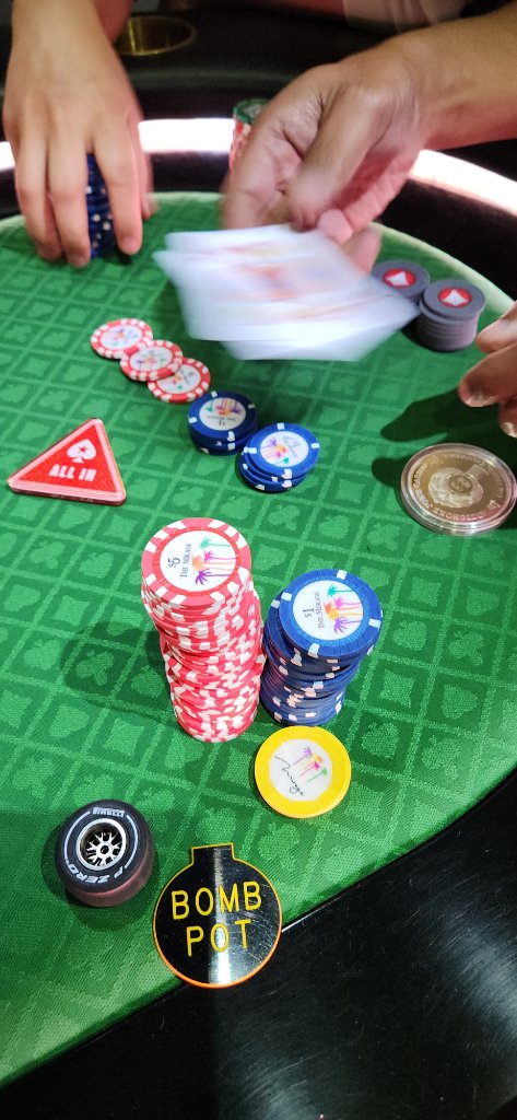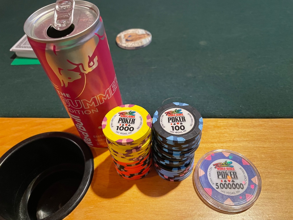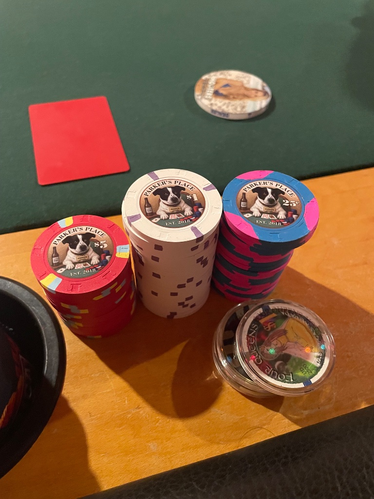 Photo dump from last night! @justsomedude was back in town and brought his WSOP set! Awesome chips! 60K deep stack. Played well, but went card dead just before making the FT. Busted soon after. Played a little bit of cash with @Kyle custom relabel set!