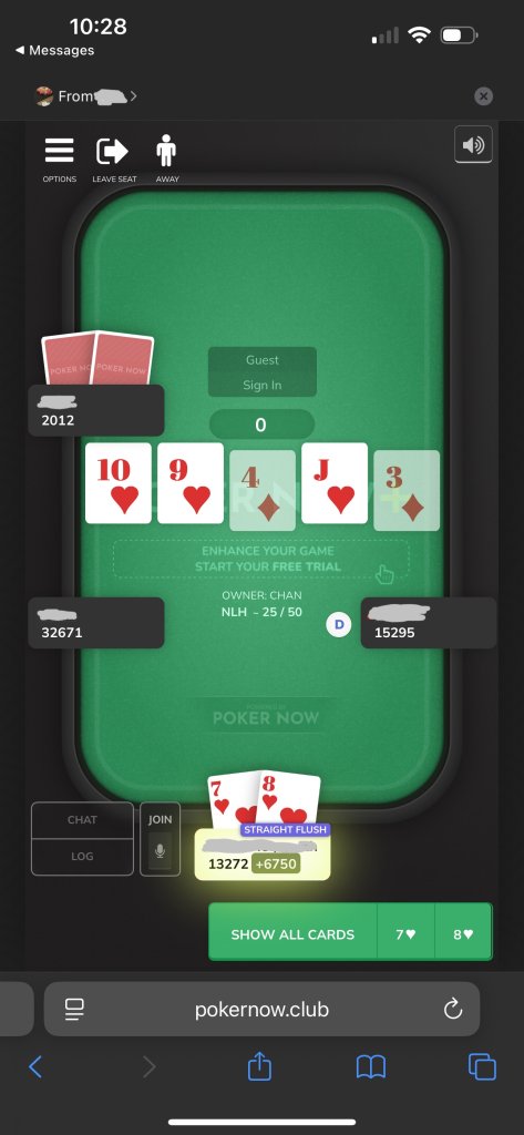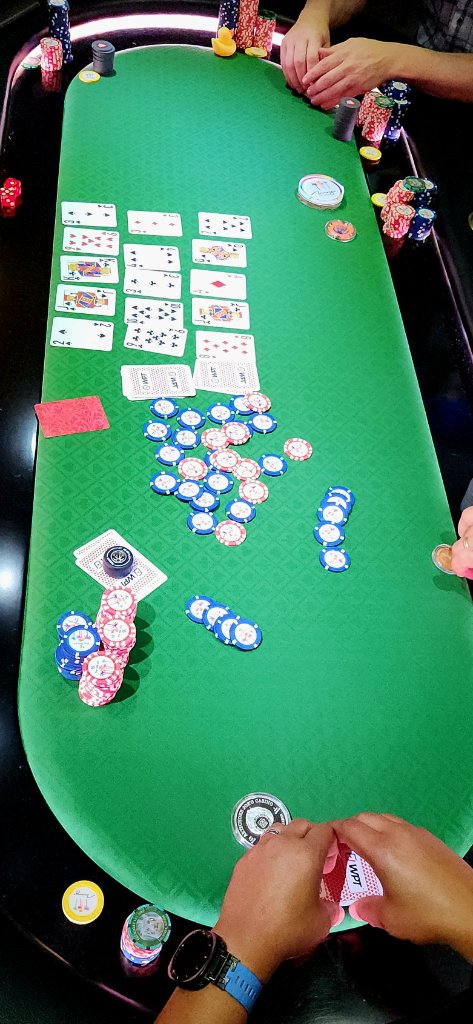 My nephew wanted to play poker for his birthday so we played some .05/.10 last night. Crazy night with TWO straight flushes! Every hand played to show down so I'm guessing that had an impact on why there were two straight flushes in one night. Shout out to my wife calling three other players all ins with 72. She said she was over it and wanted to be done haha