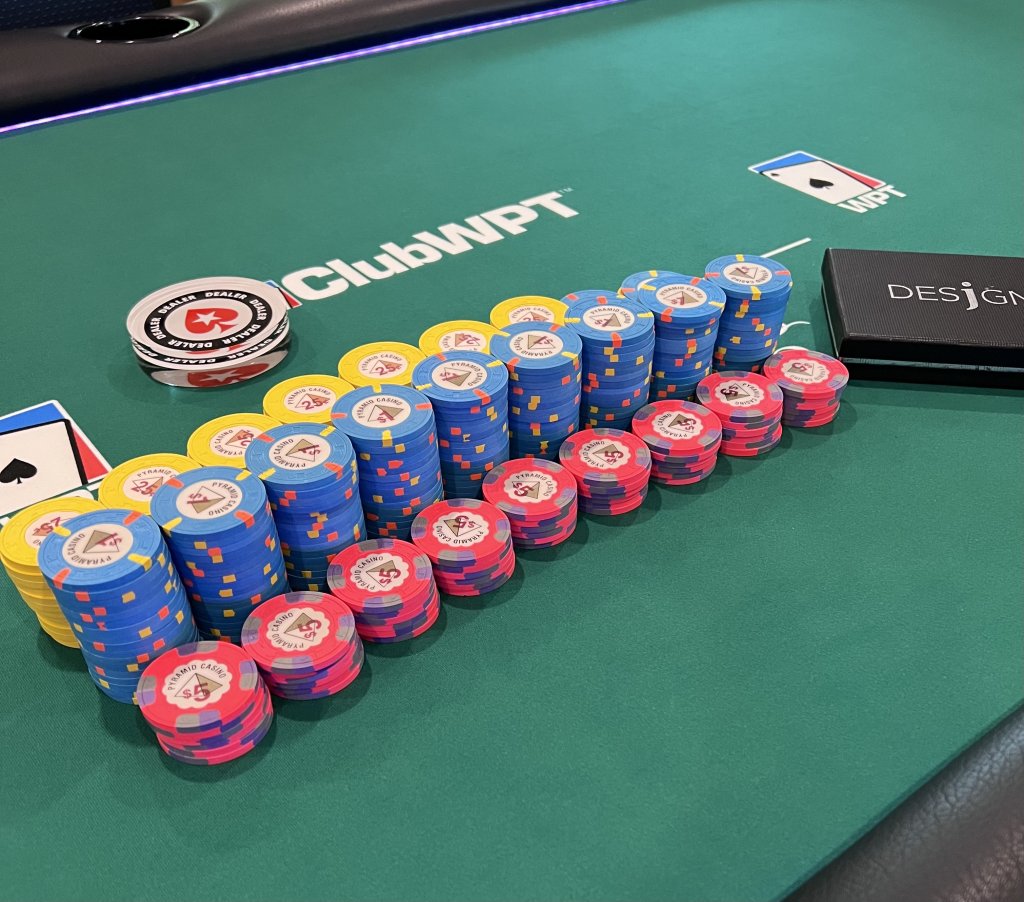 Stack at the peak was around $1k, but I ended up cashing out for 850ish for a nice $350 win.