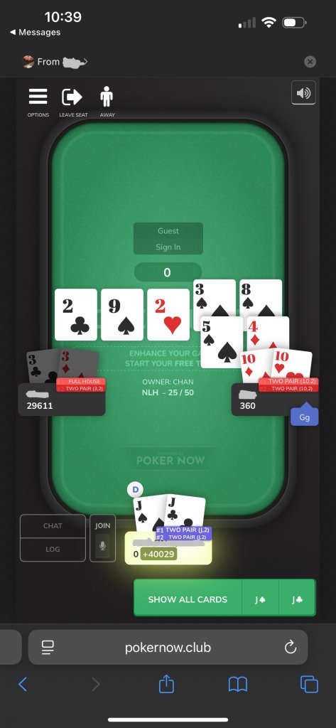NO 7-2, FLD or any other side games except Double-Board Bomb Pots because the 2 birthday boys wanted them