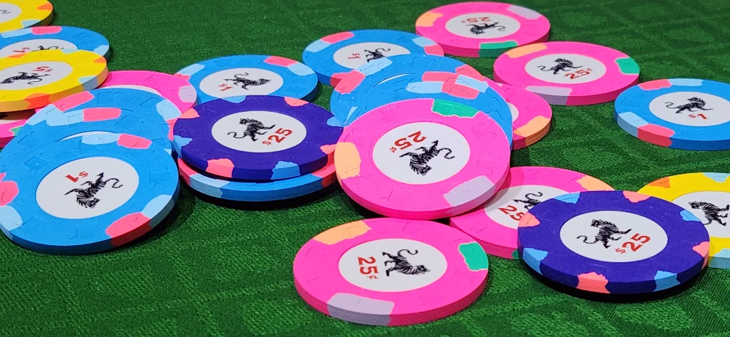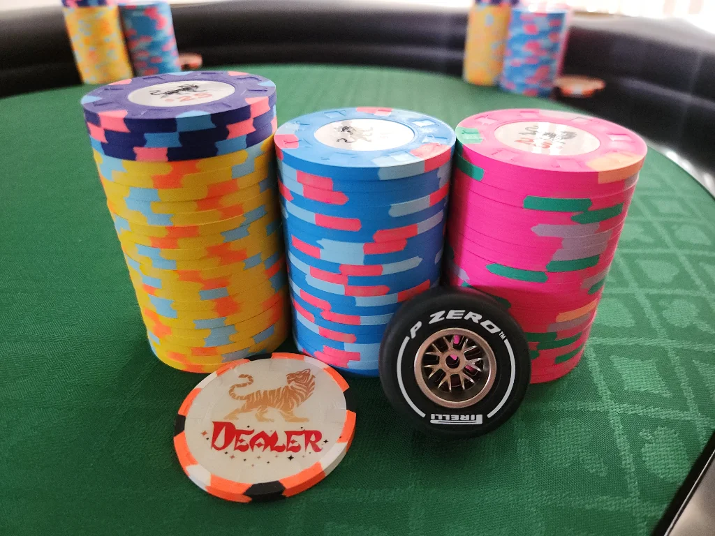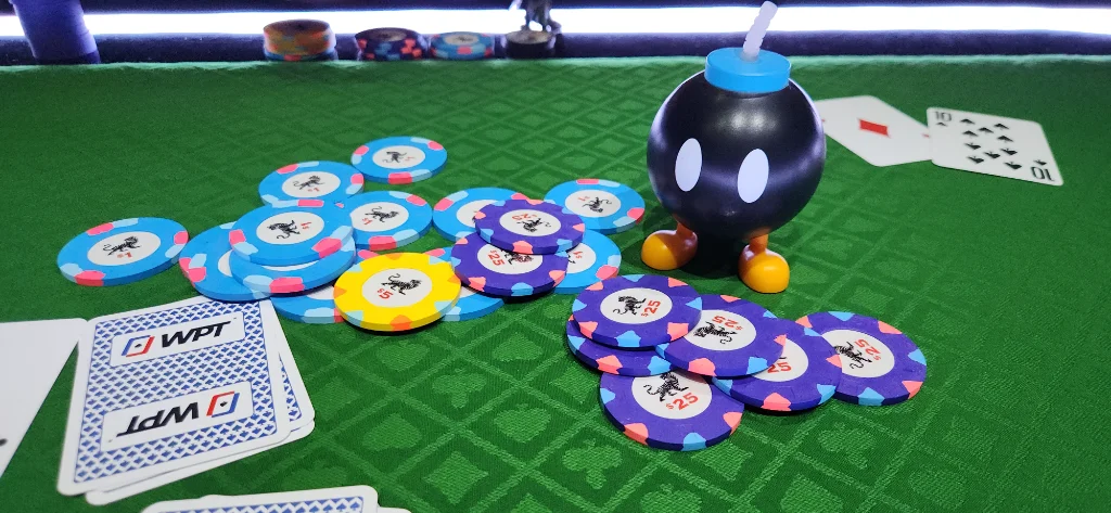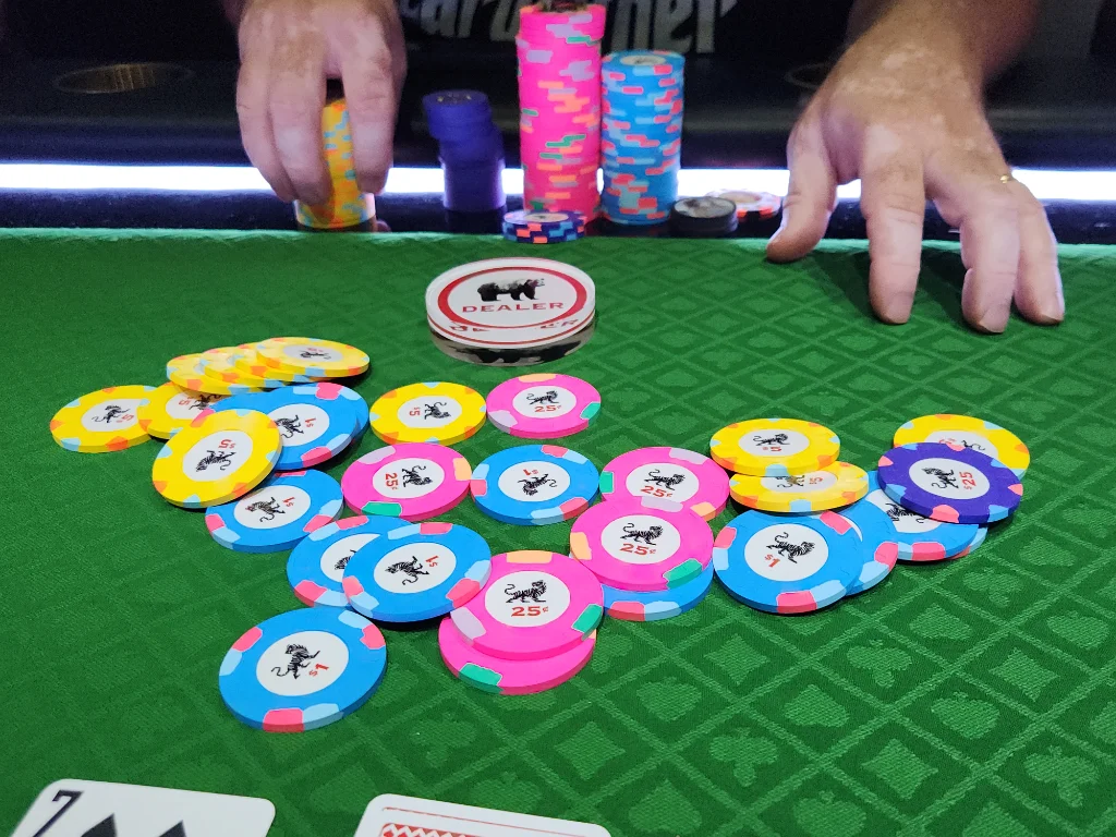 Old picture from my first time there. I've since upgraded the cards to Bicycle Prestige, no luck on the chips.