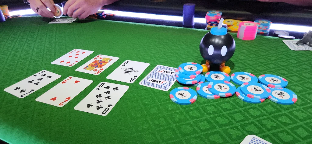 Faantastic game. Had a few big pot wins and bluff catches early on, ended up down quite a bit throwing a party for everyone else. As a happy host it was a win, 0 complaints here. Might be the last time I see most of the players so I'm fine giving some parting gifts and calling with 3rd pair. I love the ability to host and bring people together and all have fun, makes me very happy.