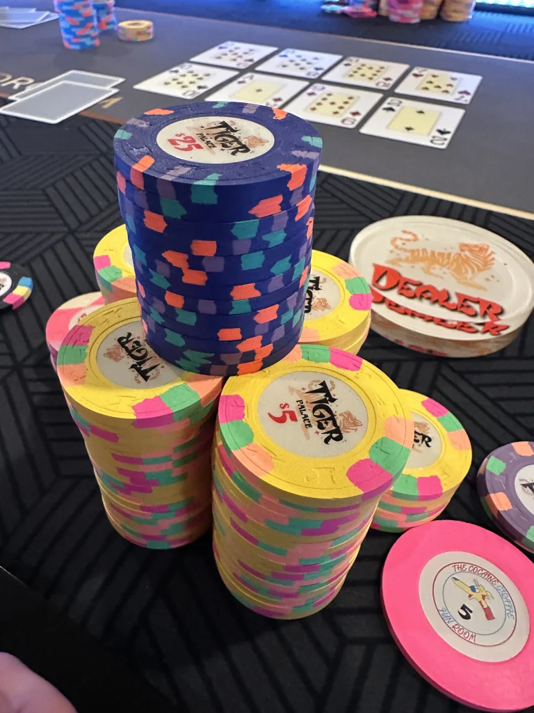 I made one bad fold that is still bugging me. $0.5/$1 blinds, Villain raises to $5 (forget where the button is), I have JJ and raise to $25. Two callers to my left for the $25, villain then goes all in for $251. I have about $700ish and count out the chips. Go into the tank and uhm and oh. @horseshoez is to my left and called my $25 and thought he looked strong. I fold - @horseshoez and next player fold. Villain shows A5o - the progressive NIT game was also on. We ran out the board and I would’ve won it of course. Everyone else at the table said they would’ve called. Earlier in the night I ran JJ into KK against another player. Anyways, obviously regretting the fold - only real ‘bad’ hand of the night. Likely too nitty, however thought it would end up 3 ways and doubt jiggities would be good most of time there. C’est la vie!