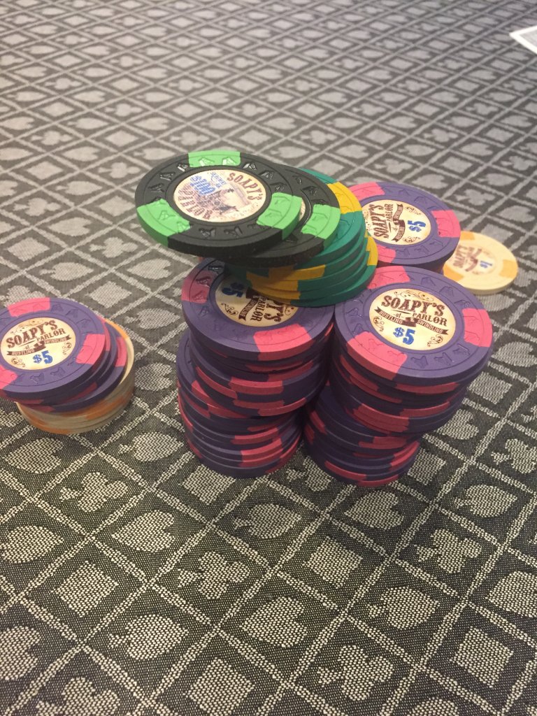Used the Soapy’s Parlor set again this week. I really like this set! Had 12 players throughout the night. Had all of the $5’s and $25’s in play and about 20 $100’s.