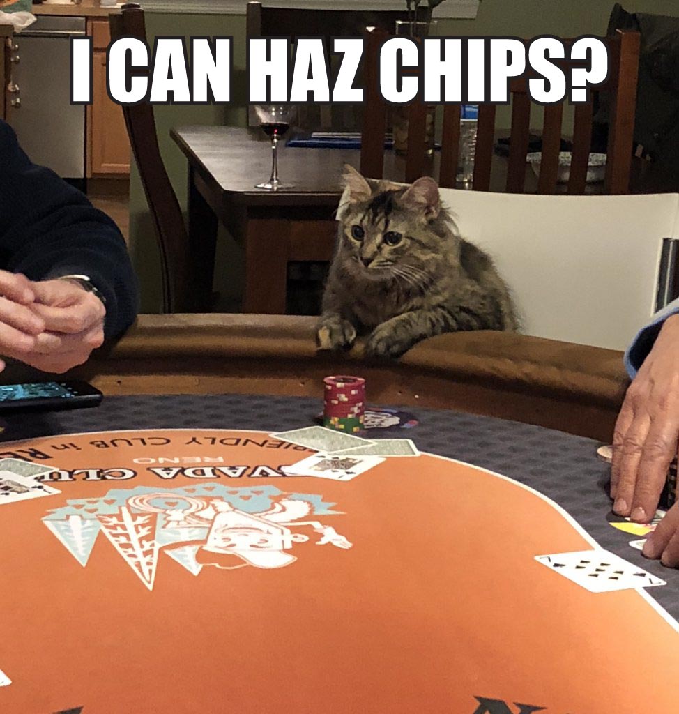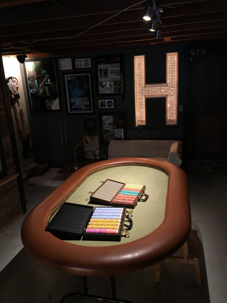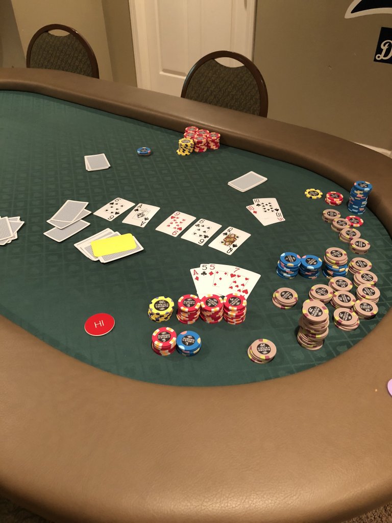 Couple pictures from tonights game. Got a few messages asking if we were going to have a game (another guy usually hosts on Wednesday nights, and he is more or less out of commission from hosting for a bit), and was able to scrounge a game together in less than 2 hours. I think they like my table and my game, because for about 6 weeks I tried to get a game and couldn't, then finally host a tournament Saturday night, and get requests for cash game tonight. Also have a bigger than normal tournament for most of the guys in a couple weeks.