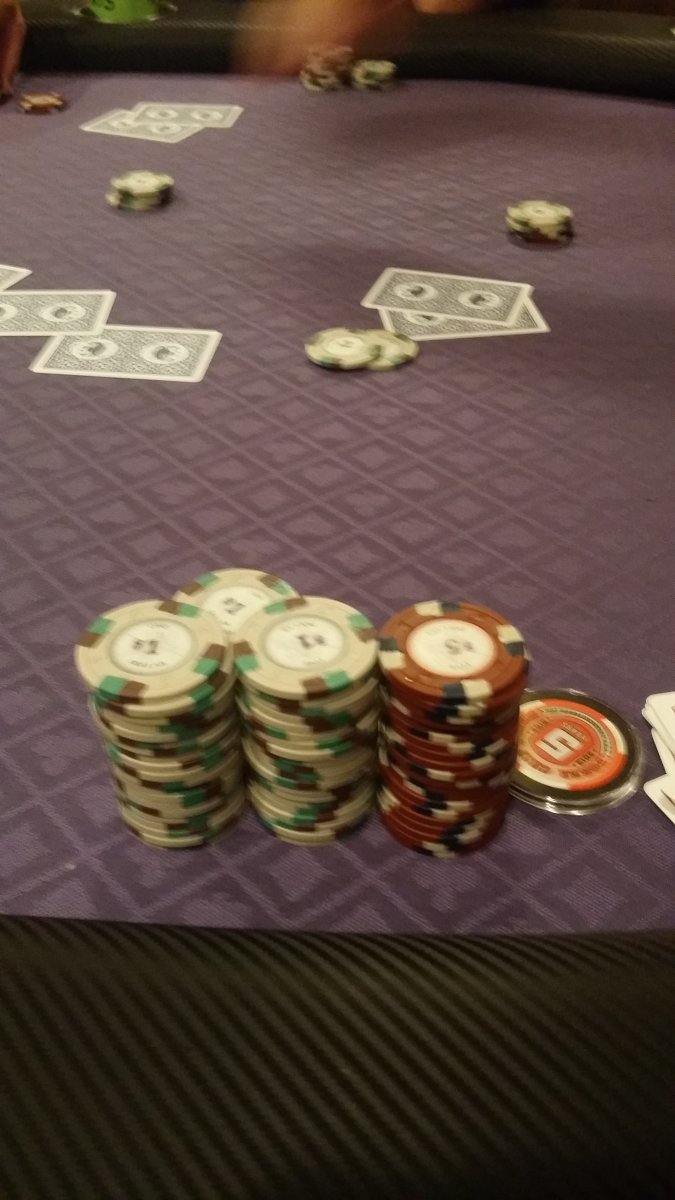 Ran really good. I had $350 of the $800 chips in play when we came together for the final table.... and finished second. I cannot play with the chip lead. I don't understand it.100 bb, we colored out the quarters.