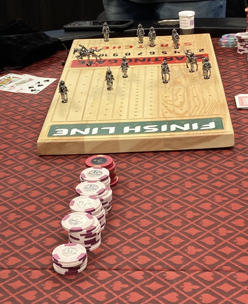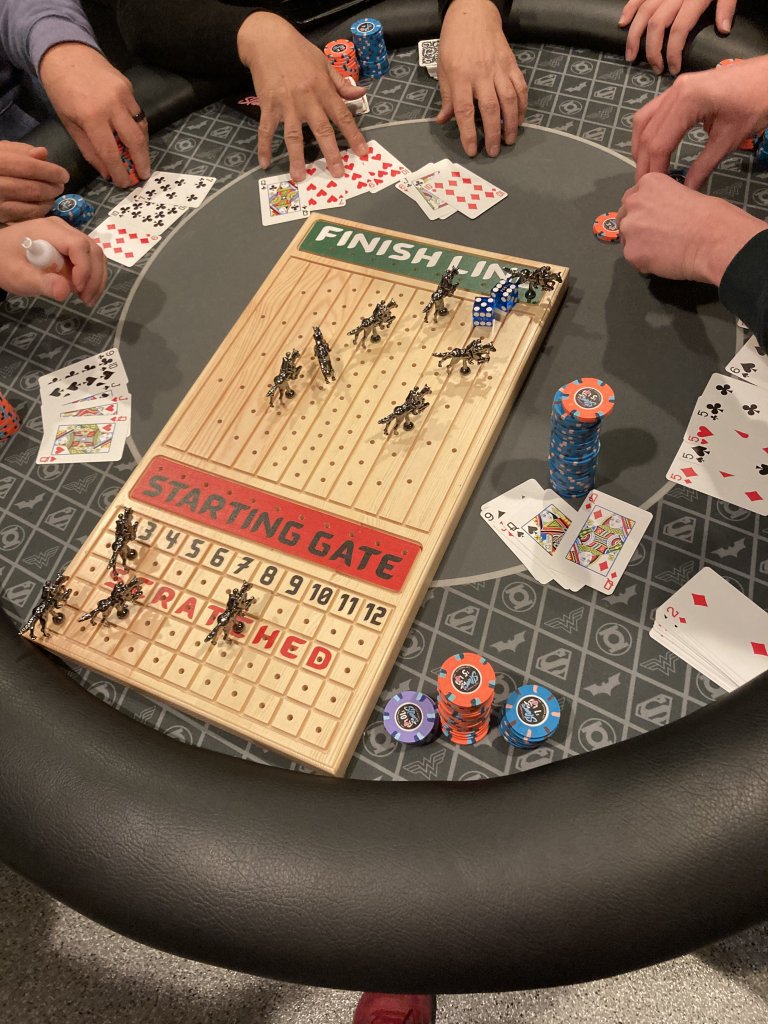 I’ll start us off. We started making players that roll doubles roll again. Nothing better than watching someone keep rolling a number of a scratched horse who has to keep rolling (and paying the pot).