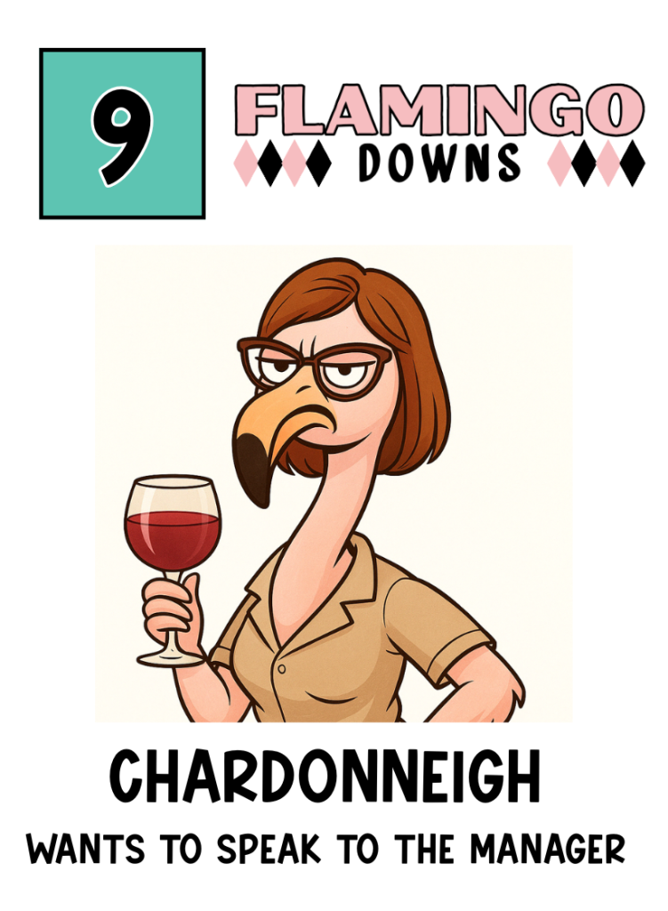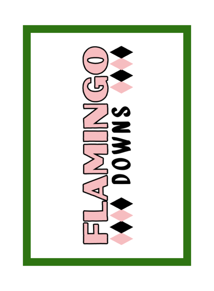 Unfortunately, the board was still a problem with the old stakes still visible in the scratch zone and that big logo still rearing its ugly head in the middle of the board. After talking to my wife (the crafty one in the family) I decided my best bet would be to paint the board and start fresh. After some ideas of going with a fun theme or new pattern or even something abstract, I finally hit upon my inspiration. If I'm going to be playing the game with my Flamingo Lounge poker chips, why not create my own Flamingo themed race track? With that, Flamingo Downs was born!
