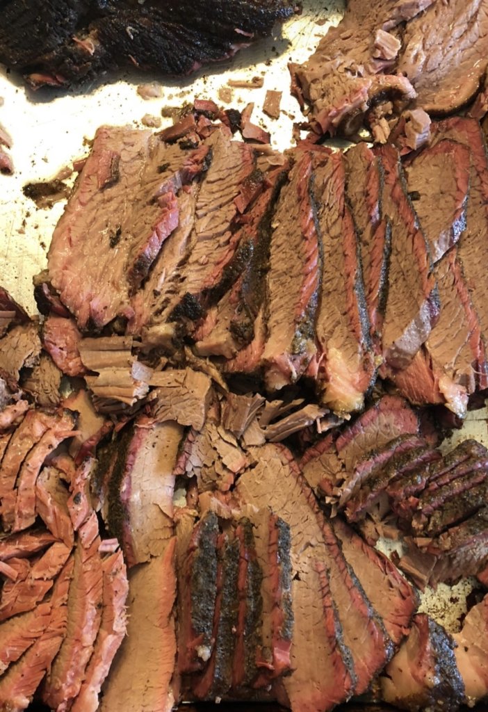 I run the smoker at around 275 for the first 3 hours or so until I have a good bark set. Then I wrap in butcher paper and let the smoker run anywhere between 250 and 300 until the brisket probes well (somewhere between 197 and 208 or so) before pulling it off and letting it rest in a Cambro for a bit. Cook time generally runs 6 -7 hours total depending on the size of the brisket. This one came off just at 6.5 hours, but that was partially because my son failed to maintain the fire correctly, and allowed the temp to drop to below 250 for about 45 min.