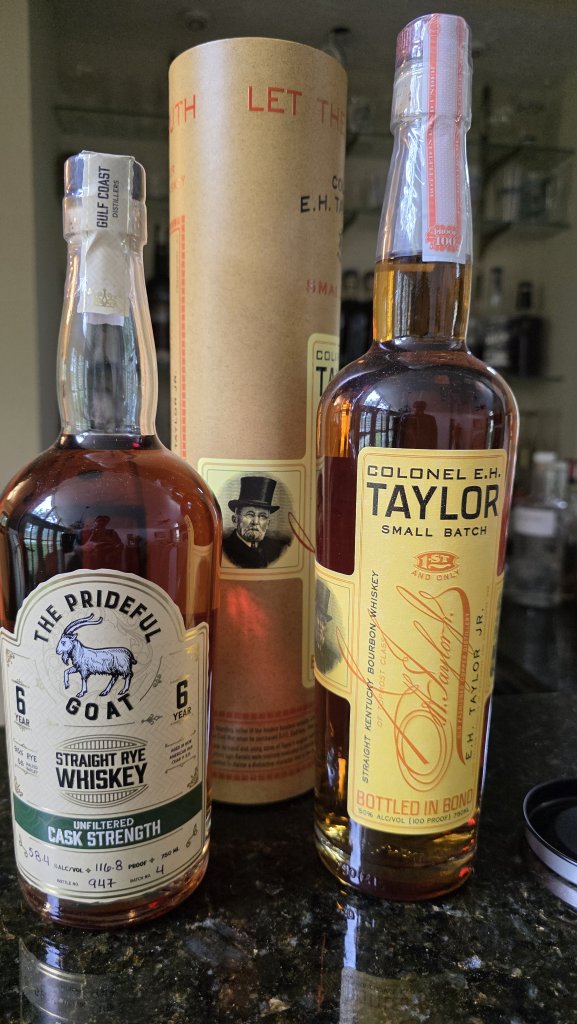 I'm wondering, has the rest of the country been flooded with the Colonel, or just Texas? We got word last week (in some bourbon forums) that E.H. Taylor Small Batch is no longer allocated. In fact, people are buying cases of it in Houston! My local store offered me as many bottles as I wanted, at $54. My bar is pretty well stocked, so I just took this one, plus the Prideful Goat 6 yr rye that I'm also looking forward to trying. It was on sale at $50, so a pretty cheap haul for some good juice!