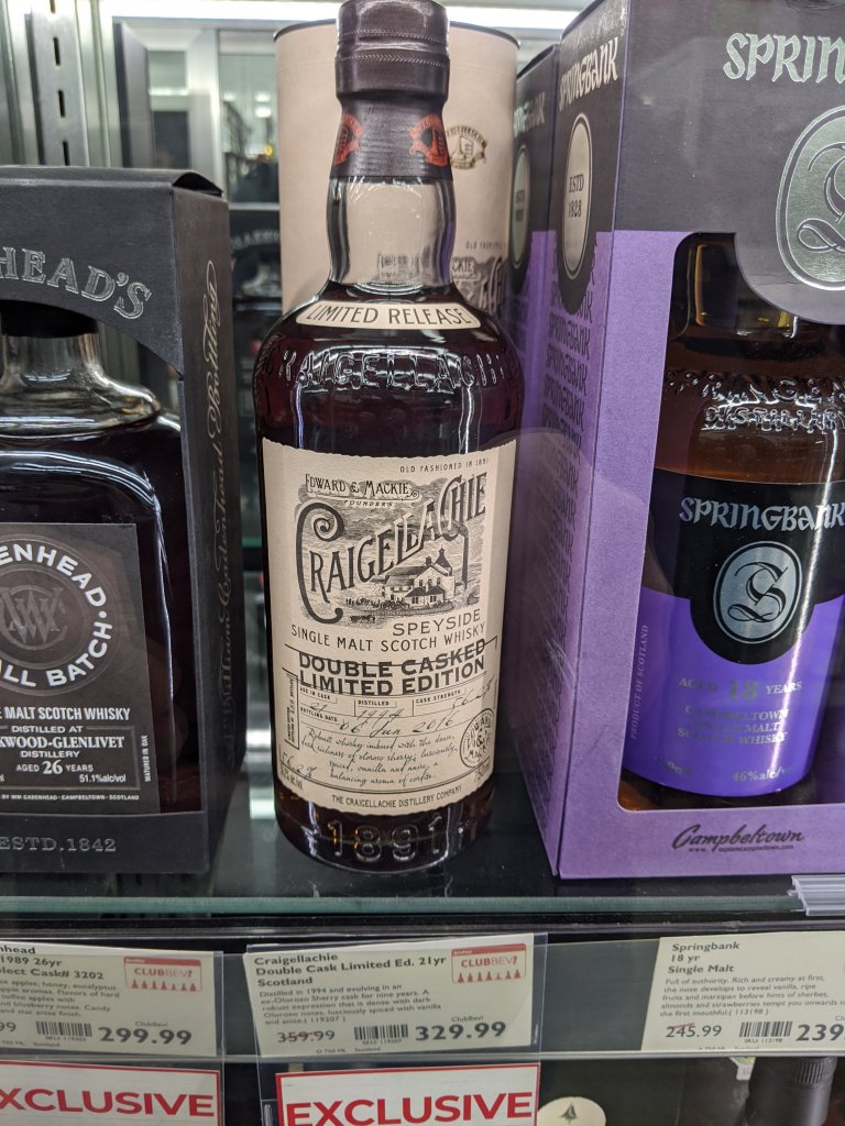 I'm looking for a bottle of the Craigellachie Double Casked Limited Edition, bottled in 2016 (21yo). They are available in some BevMo locations only. Unfortunately that bottle is not available for shipping. If you're shopping there and see it, I'd really appreciate if you could snag a bottle for me. They should be a little above $340. Thank you in advance, guys.