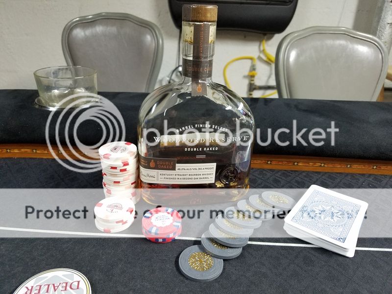 My dad got me a bottle of the Double Oaked Woodford Reserve for my birthday, cracked it open for tonight's tourney & cash game. What an absolutely fantastic bourbon!