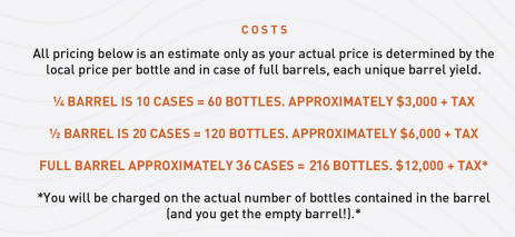 All said and done for a 1/4 barrel (60 bottles) this works out to a total of $3,252 or $54.20/bottle. These numbers are all approximations at this point.