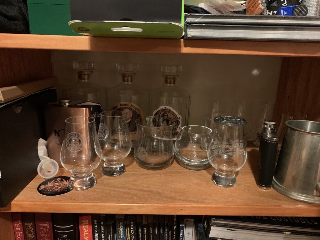 Wife (after it had been sitting on the floor for two weeks): "The whisky is NOT allowed to stay on the floor I don't care if you are reorganizing it."