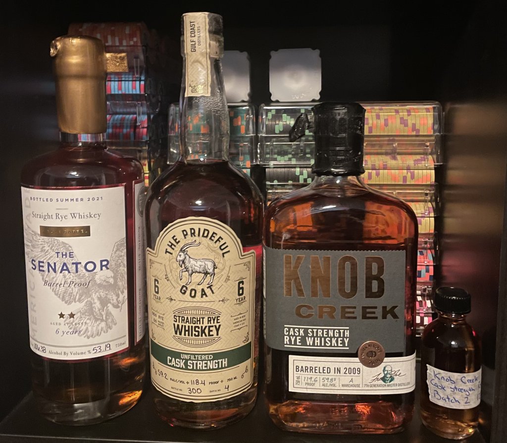 The Senator is very good. I get like orange slices candy on the nose. The palate is red berry and rye spice. A little thin on the finish.Tonight’s lineup. The Senator and Prideful Goat are both 6yr MGP 95/5 ryes, so I’m looking forward to comparing them. And then I’ll compare the two KCs.