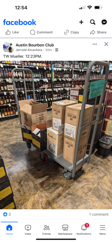 I was at a different liquor store that day and my buddy asked the front for EH Taylor and they said they didn't have any. One of the guys shopping there heard and whispered to us that TW up the road had 10 bottle of EH taylor just 10 mins ago so we ran over and got some. They were down to 6 bottles by the time we got there.