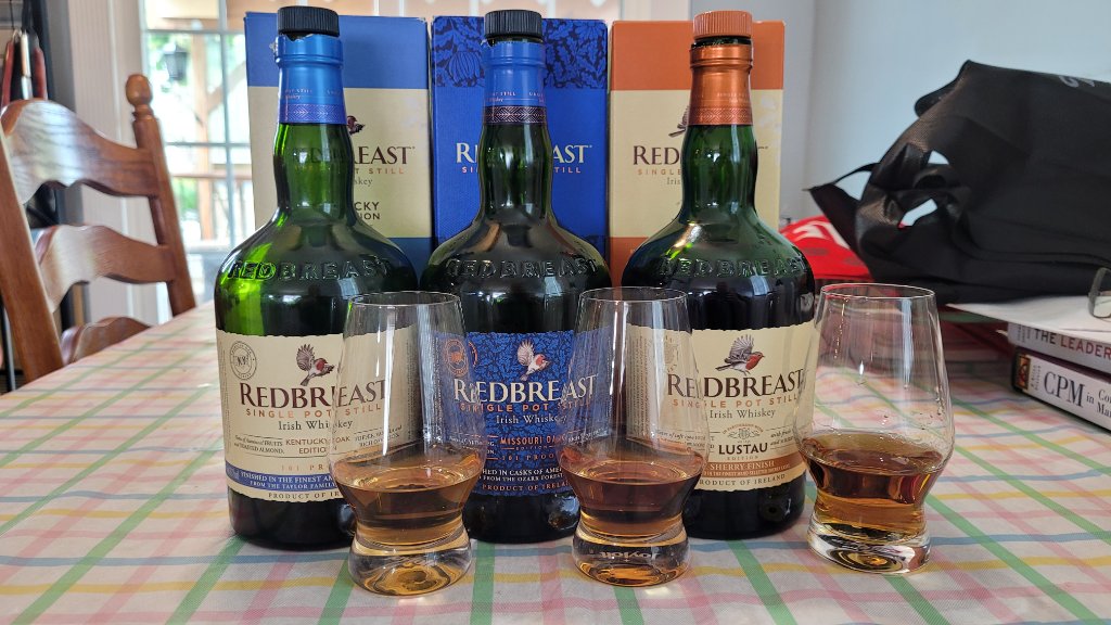 Naturally, a nice Sunday afternoon Redbreast flight was required to help answer that question better. I've been meaning to do a RB Kentucky vs Missouri head to head, so this gave me the opportunity to do that and add in the Lustau. :cool