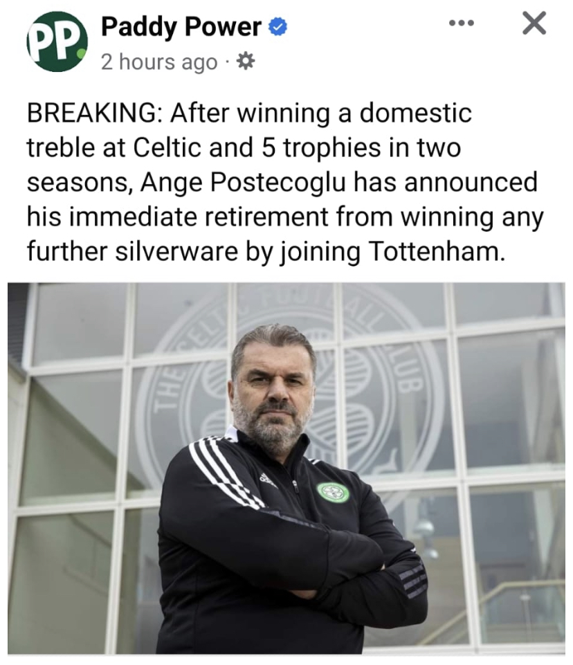 Just been told by someone in the know that Ange is away to Spurs. Celtic offered him a long term contract a couple of months ago and he knocked it back. Gutted.