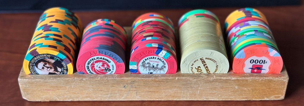 Today we talk about something that came into conversation this morning with Emilio Soto and I as we were talking about Brass Elephant chips and then the recent find of Adolfo's casino chips out of California. The idea was that many people are building sets now a days and there are still those people that are collecting "sample sets" (one of each denomination or style of chip from each casino). I've seen plenty of the set builders that have singles collections as well, so the idea was that there are these harder to find chips coming out and it's going to peak the interest of many people trying to get these chips. Will it be that chips will be traded more often than sold to try and fill in these final spots for the sample sets instead of selling chips to buy the missing piece with cash? That's a possibility and I'm sure that many would be open to this or something similar. I actually like the idea because it keeps chips moving in the hobby and they aren't locked up, but I'd love to hear what others think! Hope you enjoy!