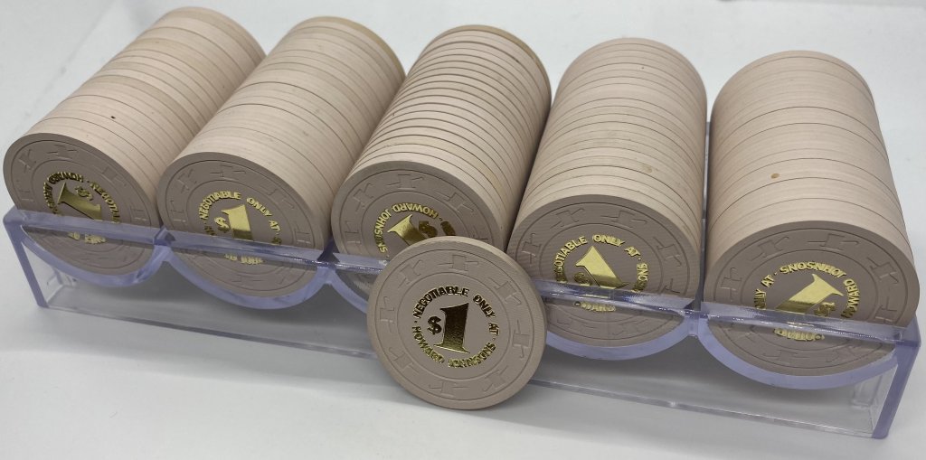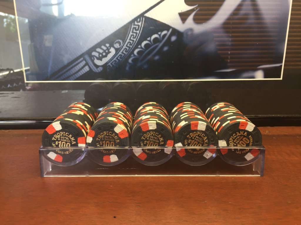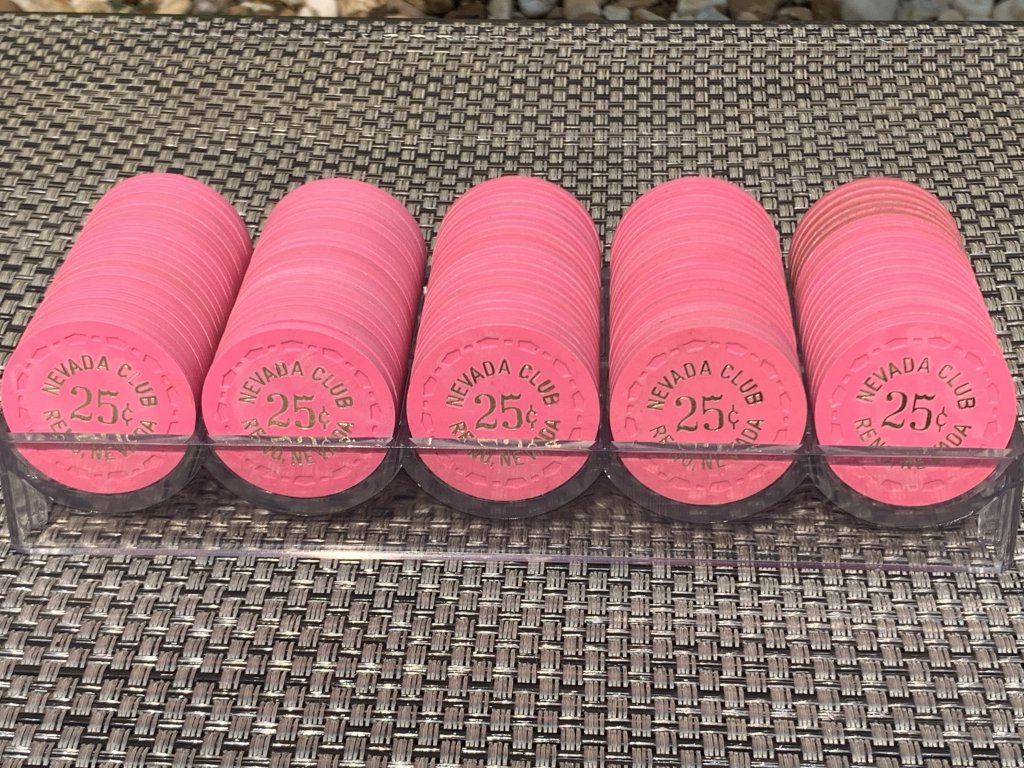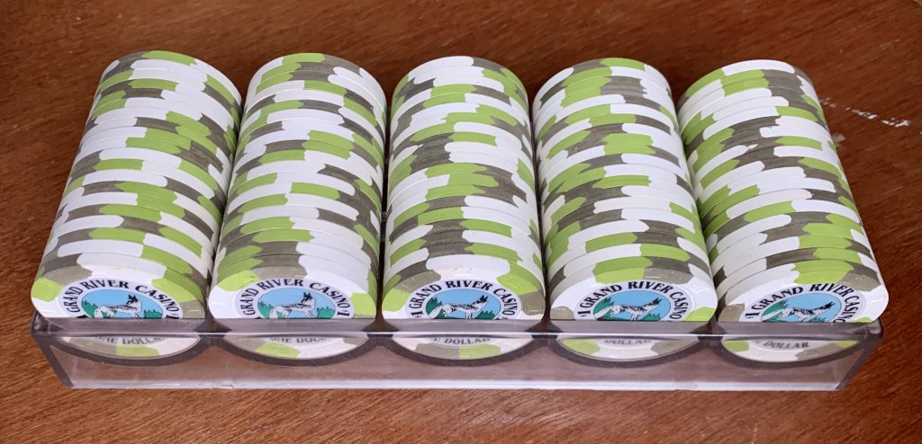 So that's 9 x 14 = 126 different individual combinations. Out of 2400 chips, I could only make a complete rack of one of those combinations. I can almost make a complete rack of two other colors of this same design. I'm betting nobody else can make a rack of this specific chip, and there's probably not many more complete racks of any of these specific chips in one person's hands.