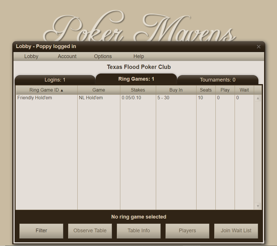 Psychology... :D And look at the stakes. Pretty friendly. This will be our main game until the group wants to step it up. I'm also thinking about having a .02/.04 game that I'll call CRAP! - I'm Broke! for when you have less than $5 in your account. :ROFL: :ROFLMAO: