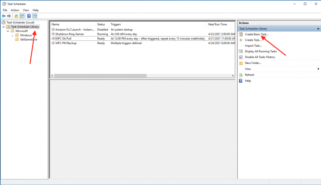 • Start Task Scheduler and create a new task to run this script: