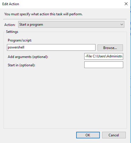 • Add arguments (optional): -File C:\Users\Administrator\Desktop\shutdown-ring-games.ps1