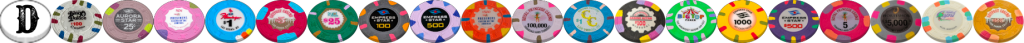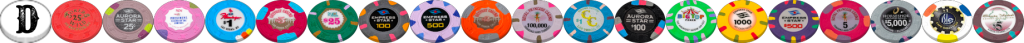 I'm trying to decide if I should remove the denoms from the chips. I've done it on a few of them where it was large and still a little visible when put into play (like the Isle $1 on the right and the green BTP). For a few of them where the denom matches the chip's position in the lineup (like the Flamingo $1), I left it.