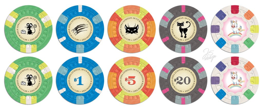 First post here! My buddy on this forum recently purchased a second-hand set of Dia De Los Muertos tourney chips (25,100,1000) on my behalf, and I am hoping to round it out with the missing 500's. While I'm at it, I would like to order the 5 DDLM designs I am missing as a cash set and bounty chips.