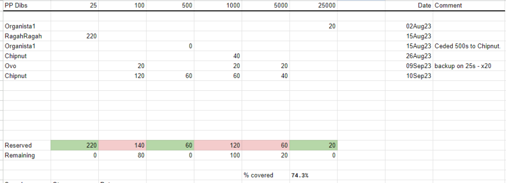 I'll be PM'ing those involved in the split shortly to verify your desired quantities and collect payments. Once that is complete I'll close this thread. Thanks all.