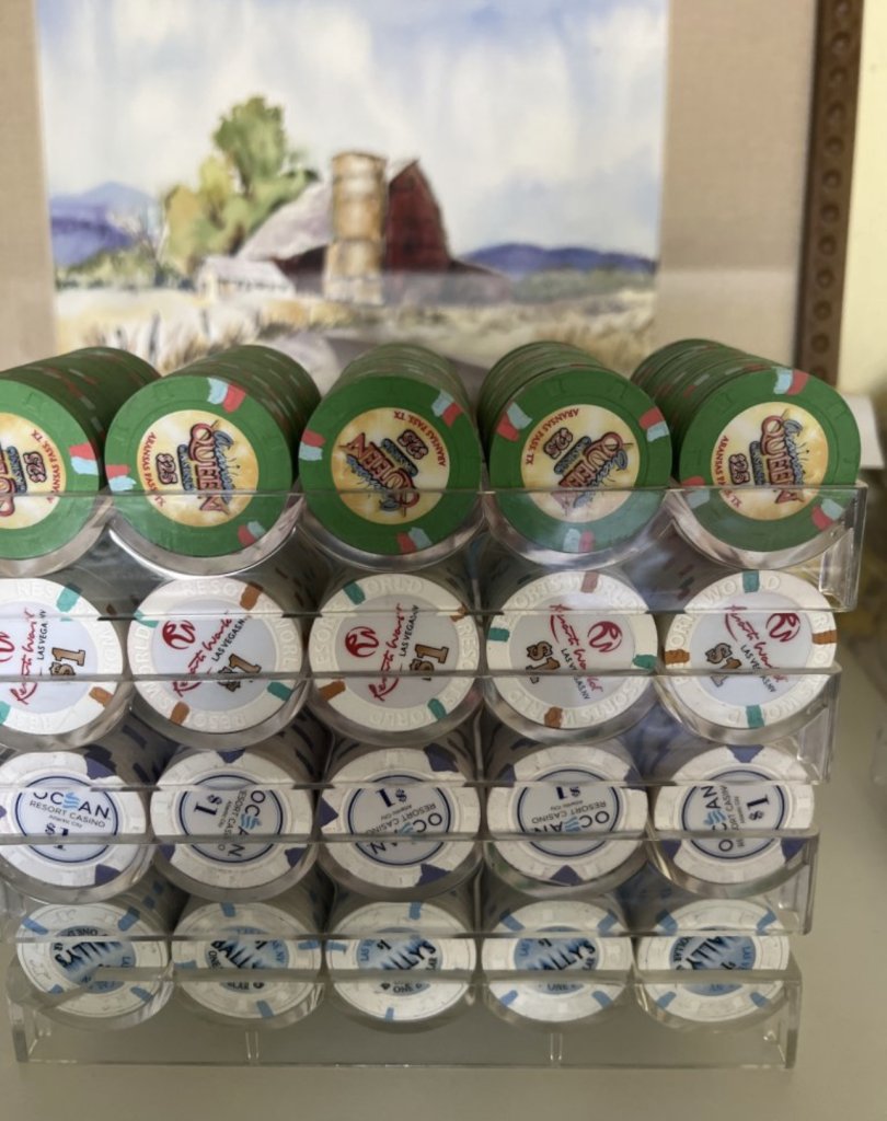 Full disclosure I will NOT use a random generator, or do some “hold-em hand” as those can all be easily rigged, I’ll actually pick a winner in the next 30 days who I choose for whatever reason I feel like, when I feel like it, and I’ll post the winner here for everyone to see. Again, Anyone, and EVERYONE is welcome to show interest and receive these poker chips, discrimination free. Even my lengthy ignore list can take a shot. If you would like to use, flip, destroy, murder, label, cash in, or even make wall art from these simply show interest. Again, I really don’t care how many sets you have, how new you are, whether u flip, flop, or whether u think I’m cool or not, I just decided I’m just not going to use or attempt to expand these particular clay gaming tokens so my loss is your gain. They are paulson, all in good working order but please note The resorts world pictured are live, never felted, and harvested day one in Las Vegas. I’ll choose a receiver then without delay I’ll post another poker set to giveaway after this one. Again, You don’t even have to follow me, like me, pay me a penny, pump my ego, or like these chips, you just have to let me know your “in” or show some type of interest somehow. If your not a member here and lurking you can still recieve them, no problem just send me an email expressing “in” or “interest” to [email protected] and your in the running. ALL ARE WELCOME IN MY WORLD. Everyone deserves a shot, ALWAYS, so good luck and THANK YOU FOR YOUR VALUABLE TIME!!!!!